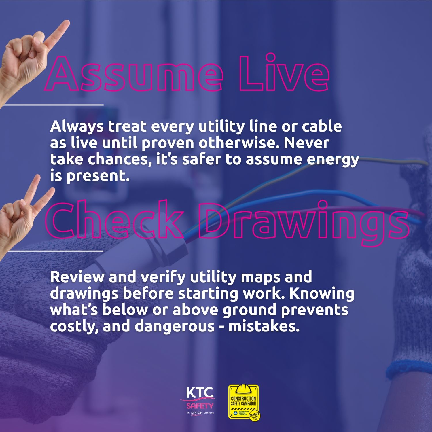 Some of the most dangerous hazards are the ones we can’t see, buried cables, live lines, underground services. A single mistake can have life-changing consequences. That’s why we always stress the five golden rules: