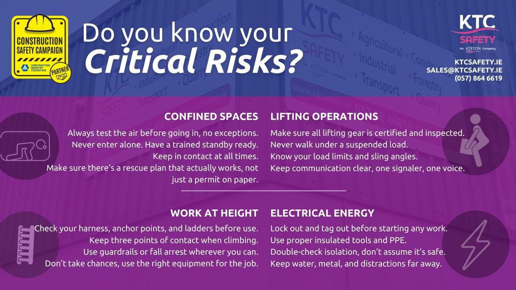At KTC Safety, we’re proud to support this year’s campaign and continue helping teams across Ireland build safer, stronger, and more caring workplaces, one decision, one conversation, and one safe act at a time.